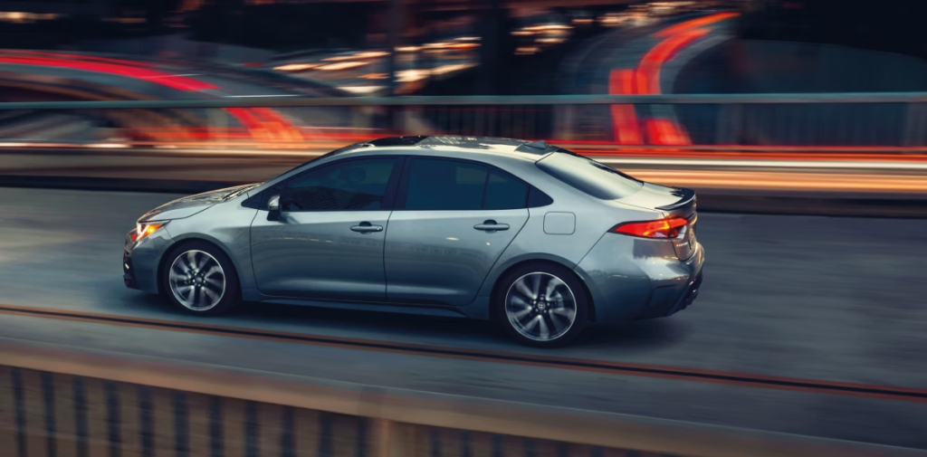 Indulge your wilder side with the distinctly sporty sedan looks of Corolla SE and XSE. Available 18” aluminum alloy wheels and a wider honeycomb grille accentuates the sportier, more planted stance. This styling cue is carried over to the rear of the vehicle, with a Dual Tip Exhaust and Rear Lip Spoiler.